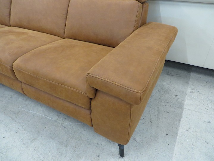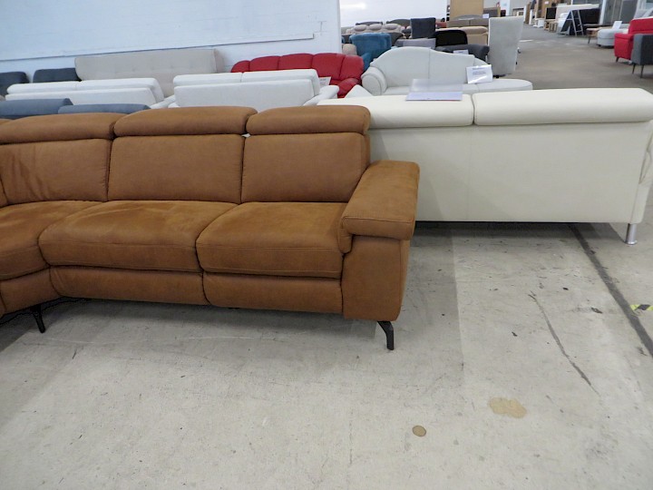 1 x elektrisch verstellbare TV-Funktion, Rasterarmlehnen, verstellbare Kopfstützen, Luxus-Microfaser cognacfarben, Schenkelmaß ca. 220 x 280 cm