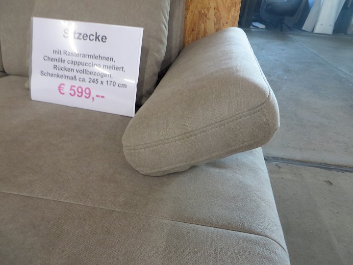 mit Rasterarmlehnen, Bezug Chenille cappuccino meliert, Rücken vollbezogen, Schenkelmaß ca. 245 x 170 cm