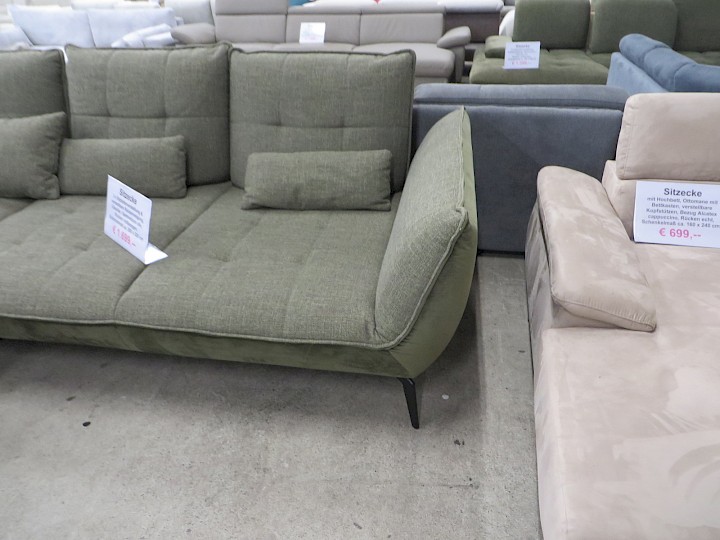 3 x Sitztiefenverstellung & verstellbare Rückenneigung, Chenille / Samtvelours oliv, Rücken vollbezogen, Schenkelmaß ca. 250 x 320 cm
