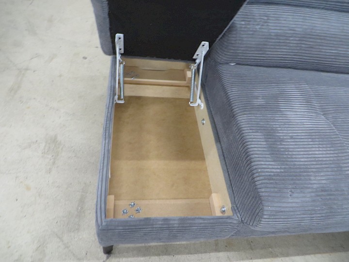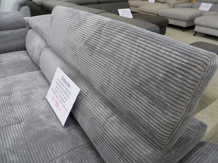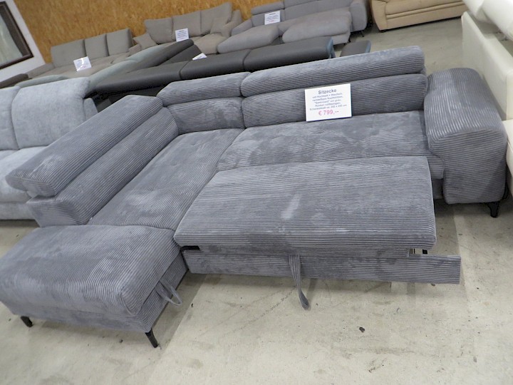 mit Hochbett + Staufach, verstellbare Kopfstützen, "Samt-Cord" uni grau, Rücken vollbezogen, Schenkelmaß ca. 200 x 245 cm