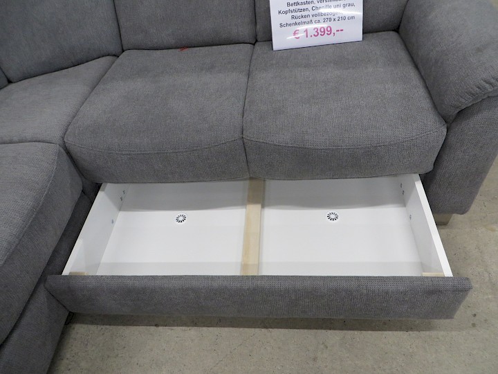 mit Sessel, Hochbett & Bettkasten, verstellbare Kopfstützen, Bezug Chenille uni grau, Rücken vollbezogen, Schenkelmaß ca. 270 x 210 cm