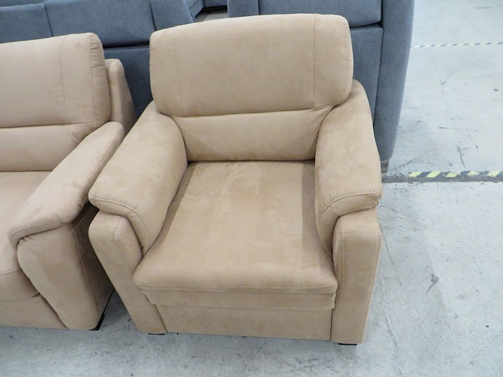 mit Sessel, Hochbett, Ottomane mit Bettkasten, Bezug Alcatex cappuccino, Rücken vollbezogen, Schenkelmaß ca. 170 x 250 cm