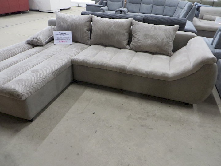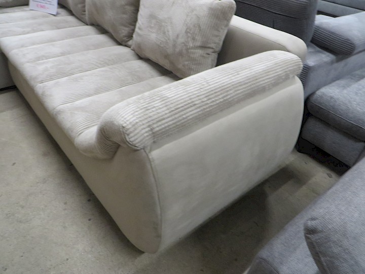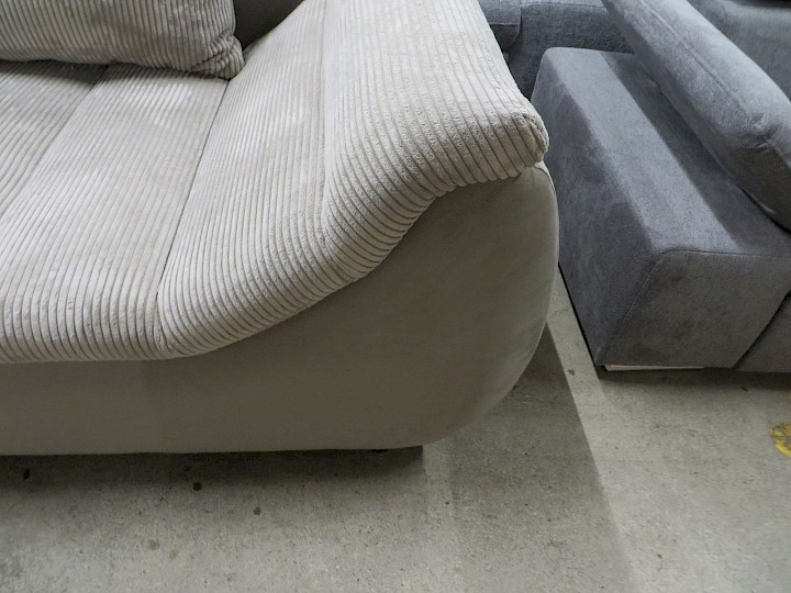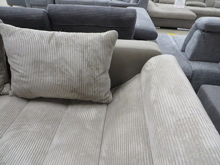 mit Schlaffunktion (Auszugs-Automatik) + Bettkasten, "Samt-Cord" / Feinchenille taupe, komplett mit losen Kissen, Schenkelmaß ca. 200 x 290 cm