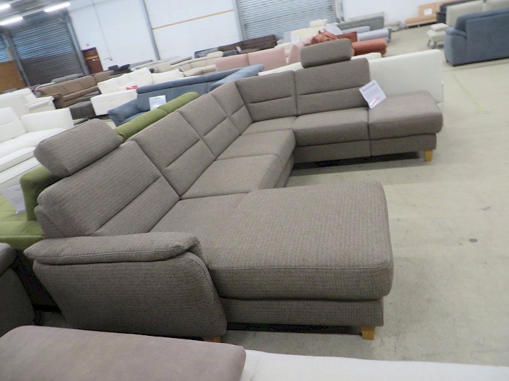 U-Form, Chenille cappuccino meliert, Rücken vollbezogen, Schenkelmaß ca. 160 x 310 x 210 cm