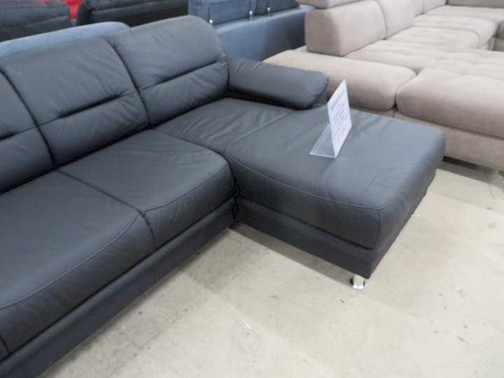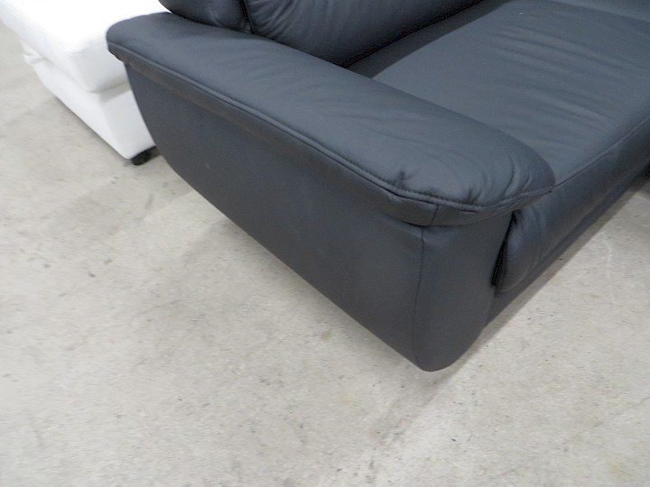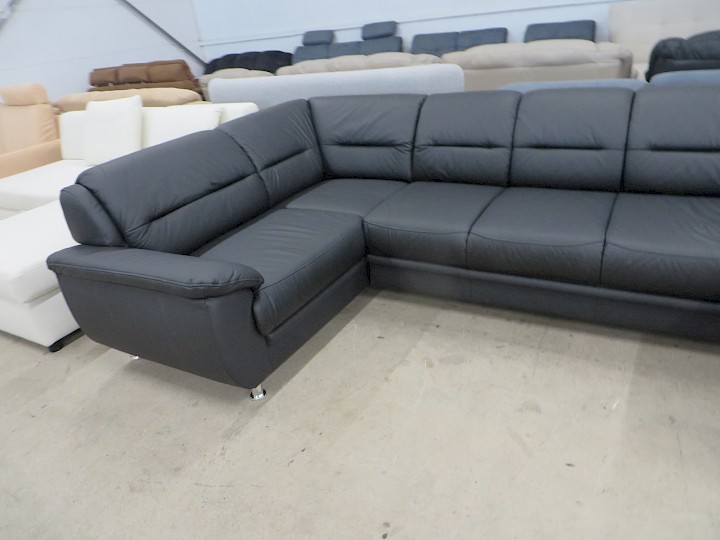 U-Form, Echt Leder uni schwarz, Rücken volbezogen, Schenkelmaß ca. 180 x 320 x 150 cm