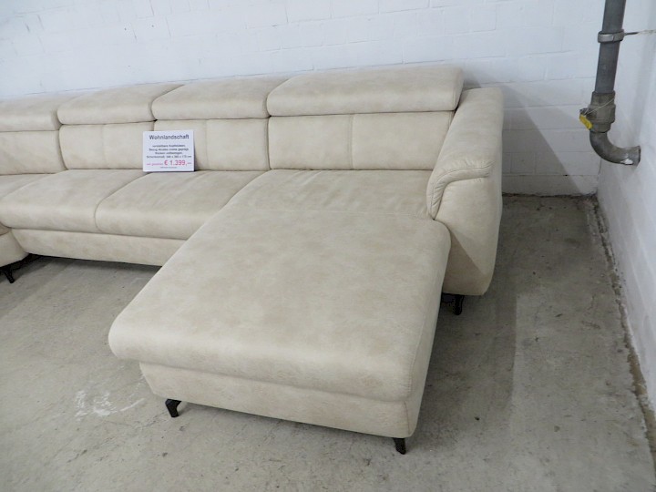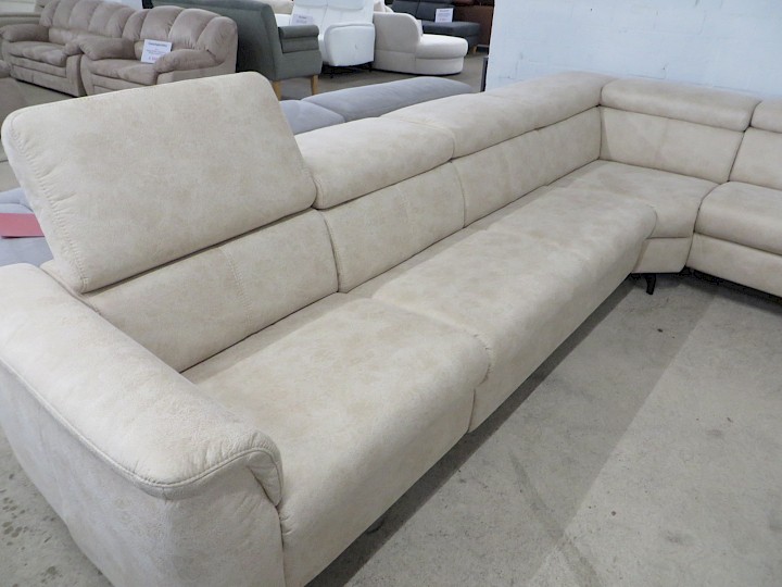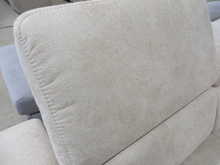verstellbare Kopfstützen, Bezug Alcatex creme geprägt, Rücken vollbezogen, Schenkelmaß ca. 340 x 360 x 170 cm