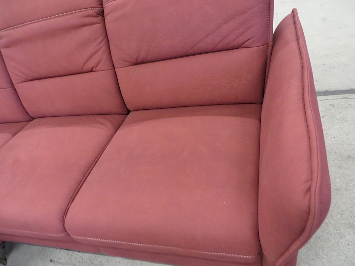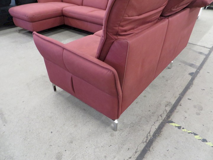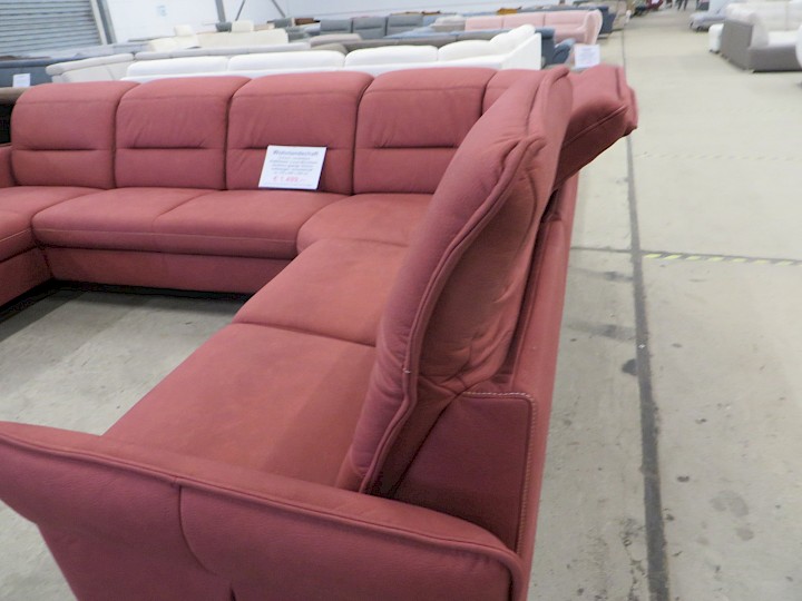 U-Form, verstellbare Kopfstsützen, Luxus-Microfaser bordeaux geprägt, Rücken vollbezogen, Schenkelmaß ca. 170 x 340 x 250 cm